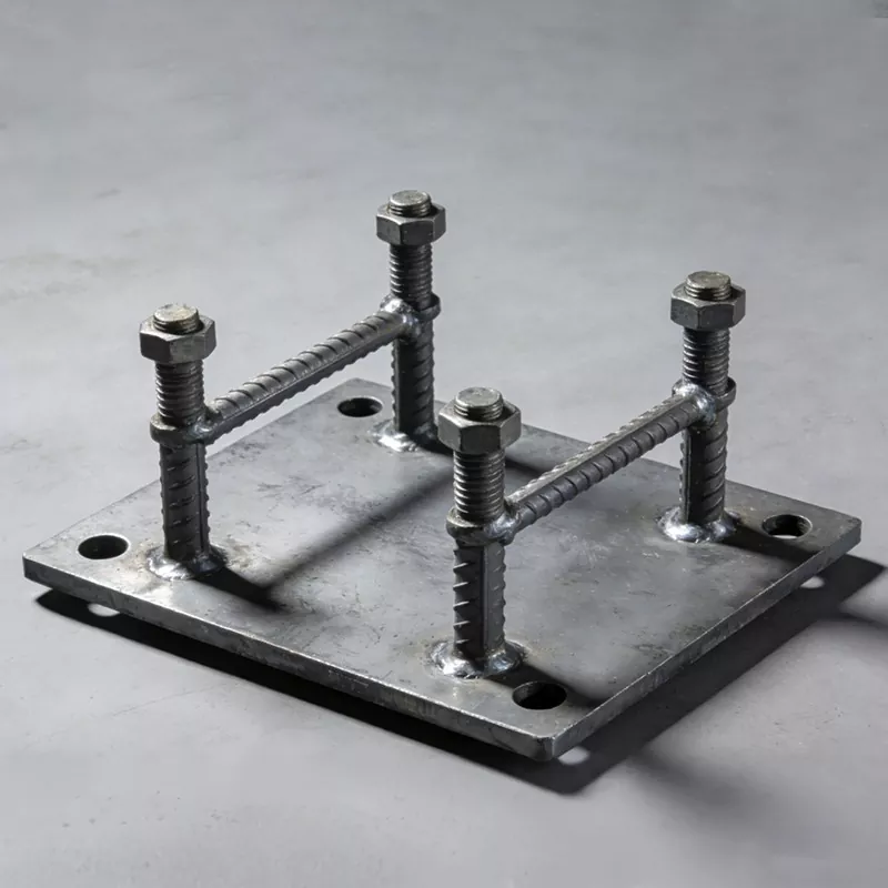Plat keluli terbenam: ketebalan 6mm~50mm, panjang dan lebar 100mm×100mm~ 1000mm×1000mm (menyokong pemotongan berbentuk khas);2. Bolt terbenam: spesifikasi M10~M64, panjang 100mm~2000mm, ketepatan benang 6H;3. Bahagian sokongan/penyambung terbenam: diameter lubang, jarak lubang dan bentuk disesuaikan mengikut lukisan, toleransi saiz keseluruhan ≤± 0.3 mm