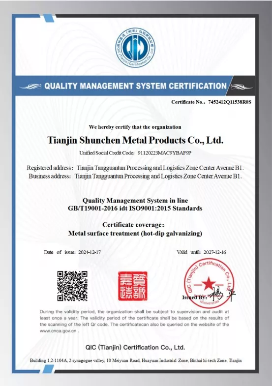 Pengurusan kanan Shunchen mempunyai lebih 20 tahun pengalaman dan teknologi dalam pengeluaran galvanizing hot-dip.