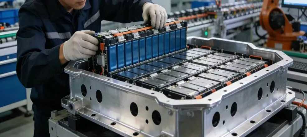 Sektor Pengangkutan: Gambar dekat Pemasangan Rangka Pek Bateri Kenderaan Tenaga Baharu