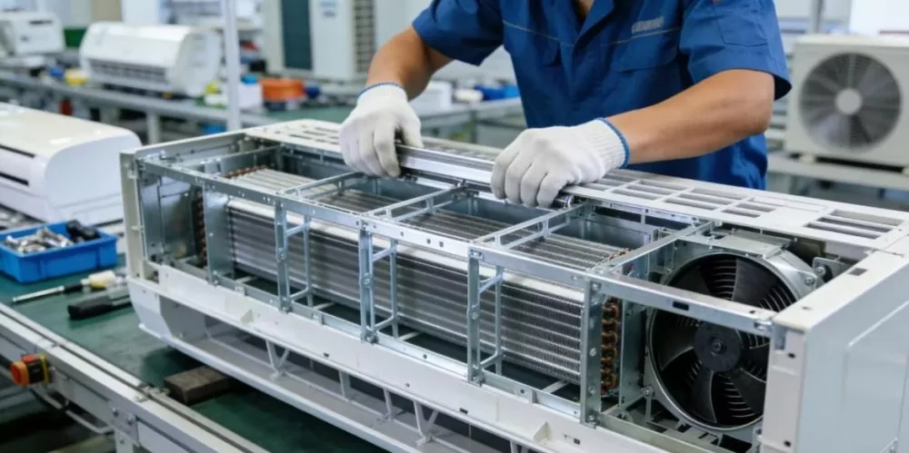 Digunakan untuk rangka kulit luar dan komponen sokongan dalaman peti sejuk dan penghawa dingin; bingkai asas untuk mesin basuh; bingkai dan kurungan untuk paparan; rangka cangkang luar dan komponen sokongan konduktif dalaman untuk mengecas cerucuk, dsb. Permukaan yang ringan, berketepatan tinggi, dan menyenangkan dari segi estetik diperlukan, dan proses tambahan seperti tebukan dan lenturan boleh disepadukan.