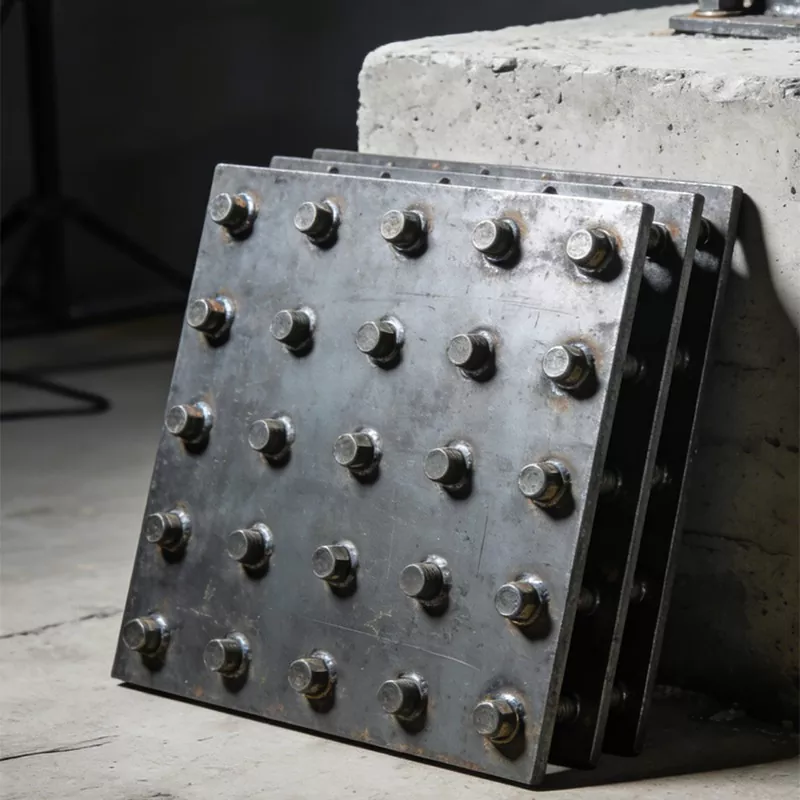 Fungsi teras plat keluli tertanam memberi tumpuan kepada tiga kedudukan teras, yang merupakan pembawa utama untuk menyambungkan badan utama bangunan dan struktur tambahan: sebagai hab penghantaran beban, ia boleh menanggung berat mati, beban angin dan beban getaran komponen tambahan seperti dinding tirai dan partition kaca, dan menghantar sama rata beban yang diagihkan ke struktur kepekatan konkrit utama untuk mengelakkan struktur kerosakan struktur utama. Sebagai penentududukan rujukan pemasangan, bergantung pada kedudukan yang tepat dalam peringkat pra-pembenaman, ia menyediakan rujukan tetap untuk pemasangan sokongan dan komponen seterusnya, memastikan bahawa struktur tambahan disusun secara teratur dan ketepatan pemasangan mencapai piawaian, dan sangat mengurangkan pemprosesan sekunder dan prosedur pelarasan di tapak; sebagai jaminan kestabilan struktur, ia membentuk struktur bersepadu yang kukuh dengan penuangan konkrit, meningkatkan kestabilan sambungan antara komponen luaran dan struktur utama secara berkesan, meningkatkan keupayaan anti-terbalik dan anti-getaran keseluruhan bangunan, dan memanjangkan hayat perkhidmatan struktur tambahan bangunan.