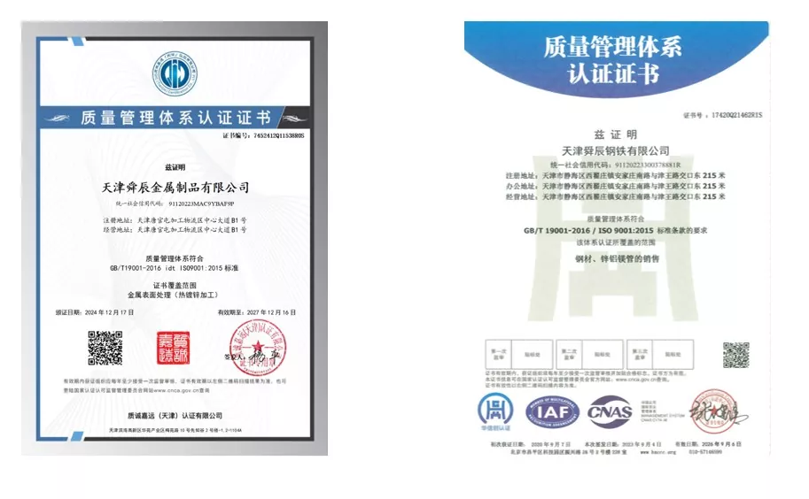 Mengapa memilih kami? Industri Tianjin Shuncheng mempunyai teknologi pengeluaran terkumpul selama bertahun-tahun, mengekalkan rekod 12 tahun keingkaran sifar dan sifar insiden kualiti tahunan, meletakkan asas yang kukuh untuk kualiti produk. Syarikat itu mematuhi piawaian pengeluaran nasional dengan tegas dan memegang pensijilan sistem ISO 9000, 3A, dan pensijilan EU CE. Dengan proses 12 langkah dan mekanisme pemeriksaan penuh 3 lapisan, ia mencapai sifar insiden kualiti dan keselamatan setiap tahun dan sifar pesanan lalai selama 12 tahun, menunjukkan kekuatannya yang terbukti. Setiap produk siap menjalani pengeringan, pemeriksaan, dan kemasan halus sebelum pembungkusan dan penghantaran, memastikan kualiti unggul. Syarikat itu menggaji lebih 300 pekerja pengeluaran dan boleh menghasilkan 236 spesifikasi paip keluli ERW, menawarkan rangkaian lengkap spesifikasi dan menyokong penyesuaian untuk memenuhi keperluan yang pelbagai dengan tepat.